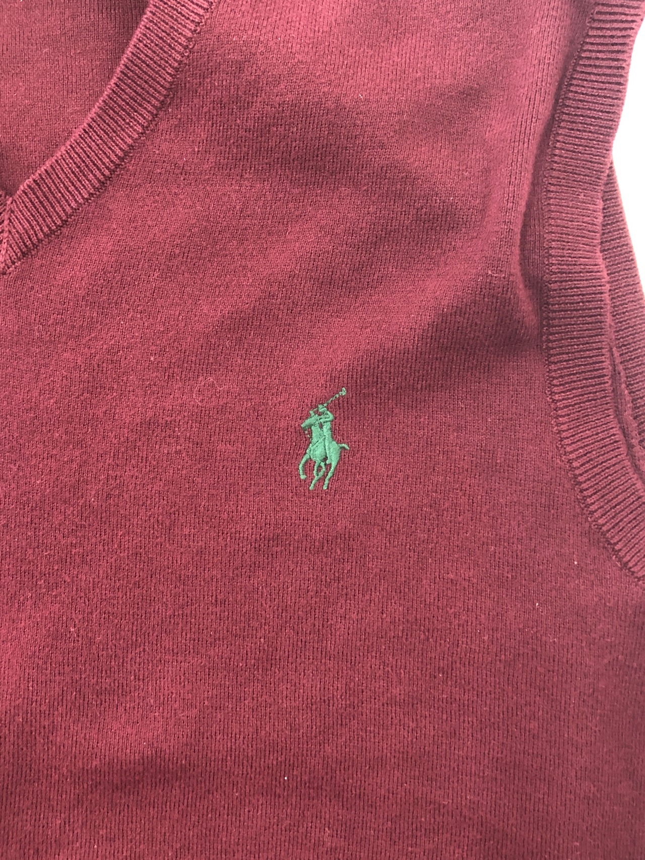 POLO RALPH LAUREN ピマコットン ニットベスト Vネック バーガンディ グリーンポニー Sサイズ